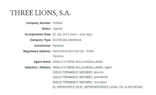 Se trata de Three Lions, radicada en Panamá, cuyo presidente es Diego Fernando Niembro, el hijo del periodista y ex candidato del PRO, que debió abandonar la campaña en medio de un escándalo por los más de 21 millones de pesos que había facturado al Gobierno porteño.