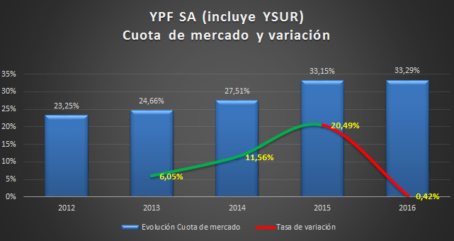 Dicha caída, y volvemos aquí a la exposición de Giliberti, se vio reflejada en un espectacular desplome de la evolución de la cuota de mercado de la petrolera argentina: