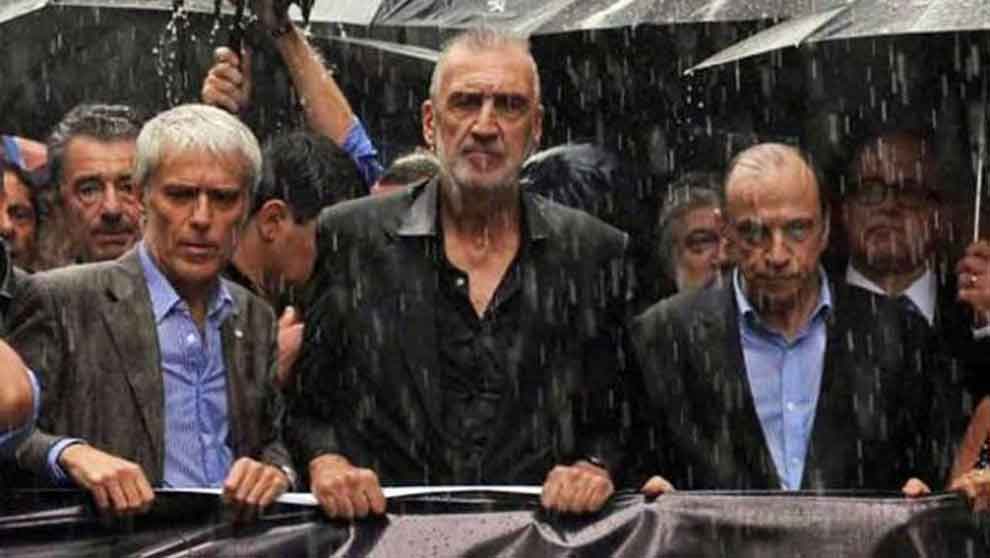 Germán Moldés -centro- en el homenaje a Nisman (a quien detestaba) al cumplirse un mes de su muerte.