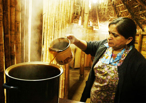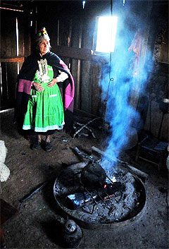 Mujer mapuche prepara hierbas medicinales en el Ruca, lugar donde el Machi atiende a los pacientes