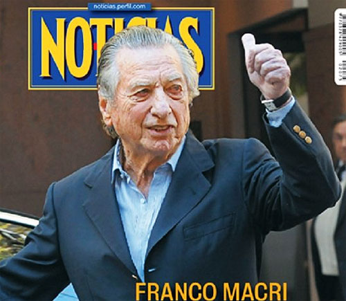 Concluyendo, Franco Macri (Tonino falleció) tiene “antecedentes en el exterior por tráfico de armas”.