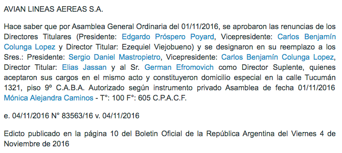 -Varió algunos nombres en su directorio en el que permanece el vicepresidente Juan Carlos Colunga, el hombre fuerte de Macri y se sumó el supuesto comprador.