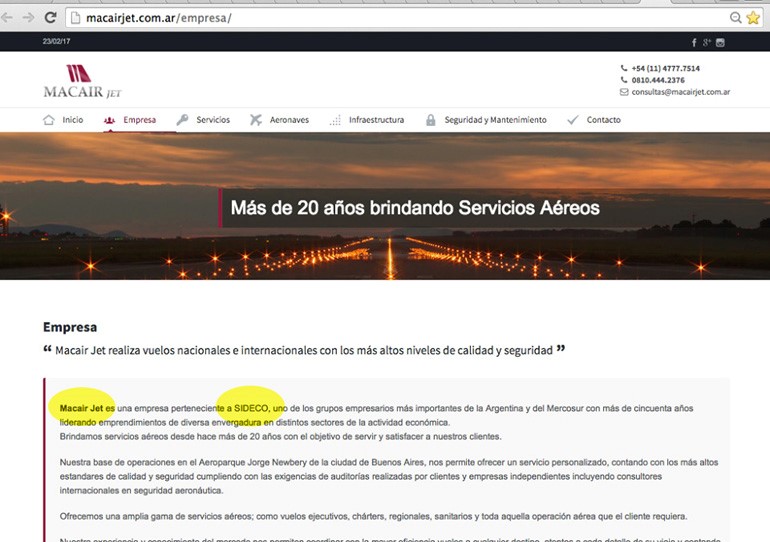 La empresa Mac Air de la Famiglia Macri nunca cambió oficialmente de dueños, mantiene su número de cuit, su planta de empleados y oficialmente sigue siendo de Sideco, controlada a su vez por SOCMA. Sólo modificó su nombre y dirección. Mantuvo al hombre fuerte de la empresa y piloto personal de Franco Macri, Carlos Colunga, como vicepresidente y nombró de presidente a Sergio Mastropietro, procesado en la justicia por las facturas truchas en el caso Skanska, y dueño de una pequeña empresa de catering y servicios de tierra en Aeroparque.