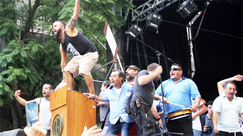 Los manifestantes de UPCN y UTEDYC se acercaron al palco para reclamar por la indefinición de una fecha del paro nacional y, le habrían gritado «traidor» al secretario de Camioneros, Pablo Moyano.