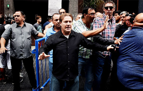 Los tres jefes de la central debieron ser retirados del escenario con custodia y en medio de empujones y corridas.