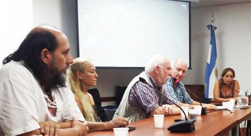 Luego de una foto conjunta entre los expedicionarios y las organizaciones que apoyan la Marcha, Julio Urien tomó la palabra y desarrolló ampliamente los objetivos de la expedición que 30 personas entre militantes, deportistas, universitarios, periodistas y artistas, emprenderán hacia las costas del Lago Escondido.