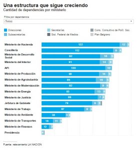 Llegando a tener 309 funcionarios políticos entre ministros, secretarios y subsecretarios –sin tomar en cuenta, las áreas de directores hacia abajo–, esto representa una de las estructuras ‘políticas’ más grandes desde la restitución de la democracia.”