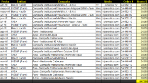 Este hecho no desalentó al PEN, que le aseguró pauta publicitaria de diferentes organismos a través de “La Cornisa Producciones SA” y bajo el numero de proveedor 13644.