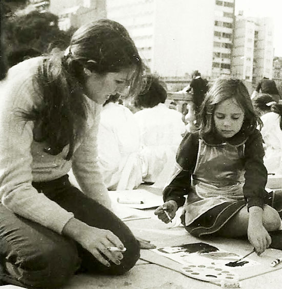 Rocío Martínez y su hija, Barbara García en la plaza del Congreso en Bs As.
