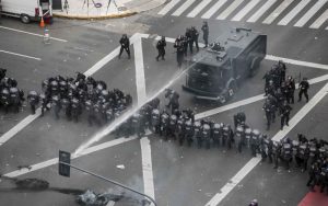 La fuerza de seguridad de la Ciudad reprimió con balas de goma, palos, gases y camiones hidrantes a los manifestantes. Las organizaciones pedían, entre otras consignas, que se pague el salario social complementario.