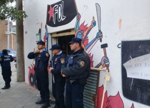 El Frente de Organizaciones en Lucha (FOL) Córdoba denunció: «Nos acaba de llegar una orden de allanamiento a uno de nuestros locales del FOL en barrio Müller. En Solares y Blas Parera. No sabemos cual es el motivo. Solicitamos solidaridad a las organizaciones compañeras». En contacto telefónico con ANRed una integrante de la organización informó que seis policías en la puerta impidieron el ingreso de integrantes al local, mientras adentro se encontraban tres compañeros, mientras el personal policial se llevaba incautada banderas y afiches sin informar el motivo ni cuál es la causa del allanamiento, ni el nombre del fiscal a cargo.