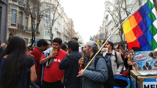 Los kollas con sus ciccus y sus banderas plurinacionales en la marcha