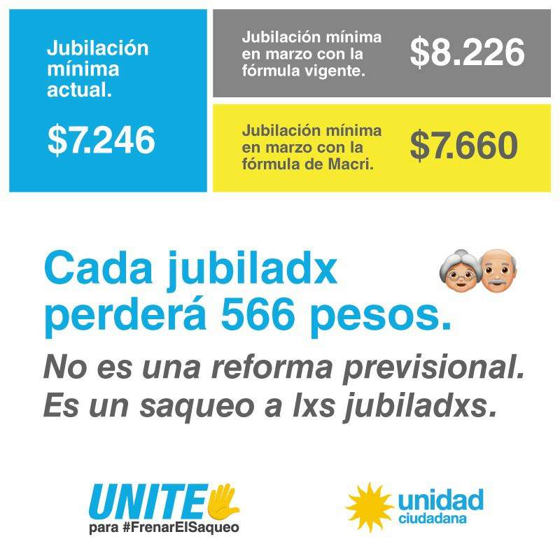 Bajo la consigna UNITE para #FrenarElSaqueo Unidad Ciudadana lanzó hoy una campaña contra el ajuste jubilatorio y la flexibilización laboral que intenta imponer el Gobierno de Mauricio Macri.
