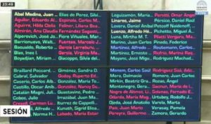 43 senadores -en verde- votaron ayer una reforma que baja las jubilaciones.