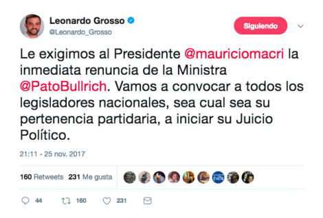 Preparó el terreno para sus dichos del día siguiente, cuando aseguró que la represión constituyó “una acción legal, legítima y enmarcada en la ley”, destinada a “cuidar a los argentinos que viven en el sur” del país, “frente a una acción ilegal e inaceptable para la democracia de un pueblo que quiere vivir en paz”. Incursionó en el límite de la apología del delito de Estado, negó el principio de presunción de inocencia y hasta le dio grado de infalibilidad divina a los datos a los informes de prefectos, gendarmes y policías al considerar que “El juez necesitará elementos probatorios, nosotros no”, en respuesta a la falta de imágenes o balas provenientes del supuesto ataque mapuche.