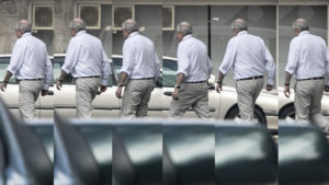 Mayo de 2018. Es media tarde cuando el exmilitar decide salir de su escondite en el que pasa buena parte de su permiso penitenciario cuando no está en Madrid visitando a su abogado. Scilingo (FOTO) camina erguido, pero lento. Avanza a pequeños pasos. Tan sólo permanecerá a la vista de todos unos minutos.