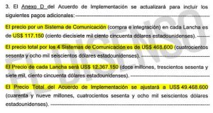 Debido a que el sistema de comando y control que actualmente utiliza la Prefectura Naval Argentina no es compatible con el sistema nativo de las lanchas, a través de la Decisión Administrativa 912/2018 publicada hoy en el Boletín Oficial, Marcos Peña autorizó sumarle u$s 468.000 para actualizar el sistema comunicacional de las 4 unidades, llevando el total de la compra a u$s 49.468.600 ($1.103.149.780 con el dolar a $22,30)