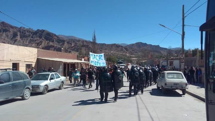 En el medio día de hoy en Tilcara vecinxs del pueblo salieron a las calles a repudiar la presencia del presidente, pese a los distintos cordones de guardia de infantería en el lugar, no pudieron contener la bronca del pueblo tilcarense.