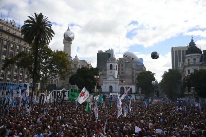 «Estamos en esta Plaza porque queremos seguir defendiendo la democracia, que hoy está en peligro. No tener derecho al trabajo, a la alimentación, a la salud, a la educación y a la vivienda, genera pobreza y hambre».El escrito, de 18 páginas, fue leído por varios de los organizadores mediante tandas ante una multitud que no dejó de manifestar su rechazo al gobierno del presidente Mauricio Macri; y en particular a la labor de la ministra de Seguridad, Patricia Bullrich; y del secretario de Derechos Humanos, Claudio Avruj.