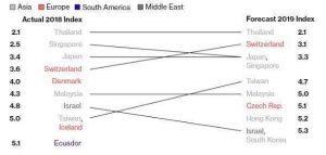 Tailandia volvió a obtener el título de la economía «menos miserable» o «lugares felices». Suiza ocupa la segunda posición y Singapur logró mantenerse en los tres primeros puestos.