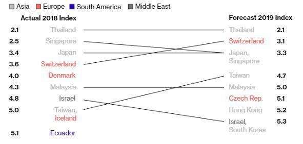 Así lo definió el Índice Bloomberg que mide las perspectivas de inflación y desempleo en 62 países. Tailandia, Suiza y Singapur se encuentran en las mejores ubicaciones.