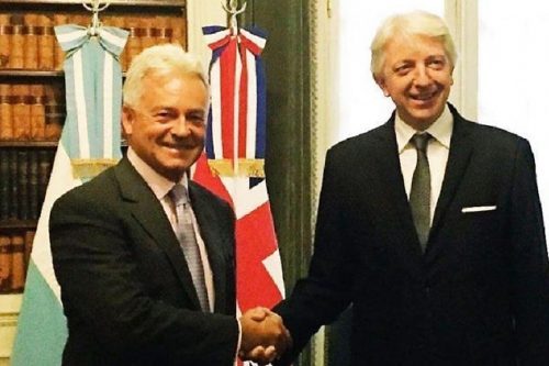 En agosto de 2016 se produjo un terremoto en la Isla de Asunción y su pista de aterrizaje quedó inutilizable. La isla ubicada en el medio del Atlántico fue durante décadas el centro de mantenimiento militar y logístico de los archipiélagos sureños. Eso generó el inicio de una restricción del puente aéreo con las Malvinas y motivó una desesperada carta de Theresa May a Macri en la que le solicitaba la implementación de vuelos directos desde y hacia las islas. Se trataba, especificaba la misiva, “de remover las medidas restrictivas” que había adoptado durante la gestión kirchnerista, en relación a la explotación compartida de sus recursos naturales, situación que –según el Foreign Office— impedía asociarse en acuerdos de interés muto. La carta de la primera ministra motivó una sugestiva respuesta halagüeña: el 13 de septiembre de 2016 el ex funcionario de la empresa Shell, Alan Duncan (colega corporativo del entonces ministro argentino de energía, Juan José Aranguren), devenido en vicecanciller británico, firmó junto con su par argentino, Carlos Foradori, una declaración en la que ambos Estados se comprometían “a remover todos los obstáculos que limitan el crecimiento económico y el desarrollo sustentable de las islas Malvinas, incluyendo comercio, pesca, navegación e hidrocarburos”. A ese pedido se le sumó el incremento de los vuelos desde y hacia las Malvinas, a través de aerolíneas de terceros países, evitando de esa manera el aislamiento logístico y económico producido por las limitaciones aeroportuarias de la Isla de Ascensión.
