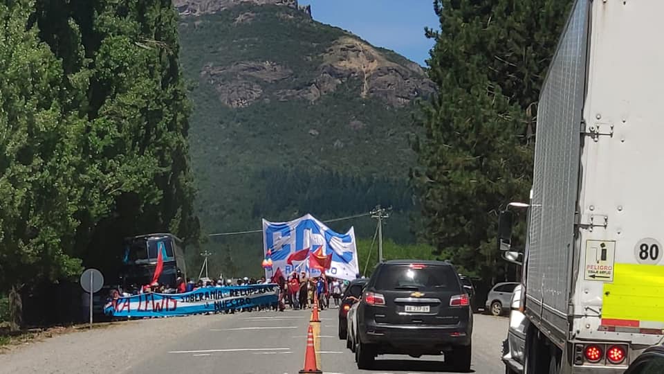 Mientras, manifestantes de la marcha realizaron una protesta sobre la ruta nacional 40, a la altura de El Foyel, a pocos metros de donde se inicia el camino vecinal. Por momentos el corte de tránsito fue total.