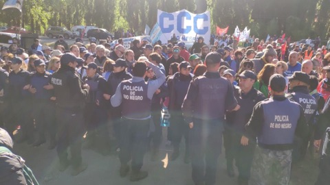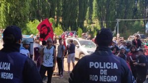 “También golpearon a la Policía de Río Negro”, relató Mario. Fuerza de seguridad que en la 4ta Marcha en 2019 había defendido la posición ilegal del magnate inglés al no permitir avanzar a los manifestantes con un cordón de Infantería a mitad del camino.
