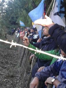 La columna fue intimada y atacada, durante el trayecto hasta el portón que impide continuar por el camino de sirga, y ahí impedido el libre tránsito por la polícia de Lewis.