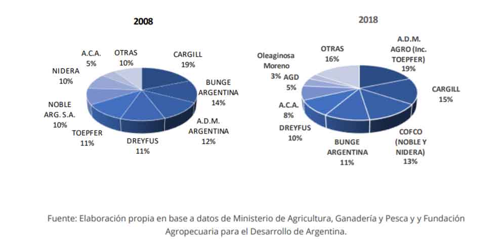 En segundo lugar, no es sólo el volumen de rentas lo que debe tenerse en cuenta sino su localización. La política pública debe considerar la enorme concentración y el poder que detentan las 8 empresas transnacionales que comercializan casi el 90% del total exportado.
