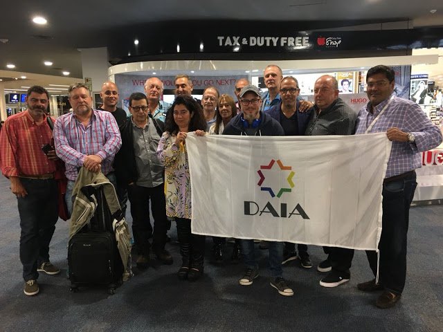 Daniel Santoro (el más alto, atrás) antes de partir a Israel en marzo de 2019, junto al entonces presidente de la DAIA, Alberto Indij.