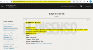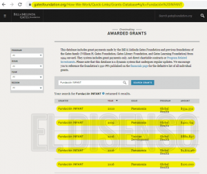 Como puede verse en la web oficial, el soporte económico del matrimonio Gates a la Fundación INFANT se ha sostenido a través del tiempo: