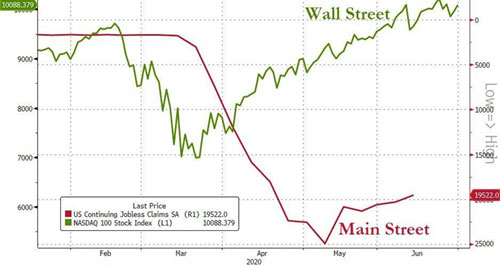 Conforme las solicitudes por desempleo aumentan, aumenta la cotización de las grandes corporaciones en la bolsa de valores de Nueva York (S&P500), llevando la desigualdad en la distribución de la riqueza social e ingresos a proporciones desconocidas.