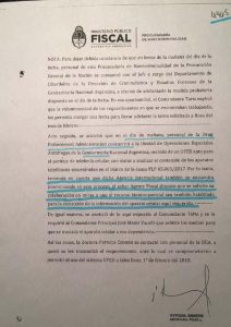 En la foja 4485 de la misma causa contra Corvo Dolcet, las autoridades de Gendarmería Nacional, que dependían de Patricia Bullrich, dejaron estampada un “acta de constancia.” A saber: