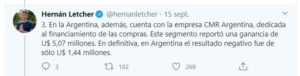 En Argentina, además, la compañía cuenta con la empresa CMR Argentina, dedicada al financiamiento de las compras.