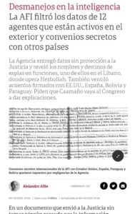 En otro fragmento de la denuncia que difundió Clarín dice: “El propio portal El Destape Web continuó publicando notas en las que se expusieron más datos secretos como nombres de agentes y personas jurídicas de cobertura». Se refieren, por un lado, a las nota donde se reveló que uno de los hijos del fiscal Carlos Stornelli, procesado por su participación en 8 casos de espionaje ilegal, revistaba en la AFI macrista. Por otro, a las empresas fantasma de la AFI cuyas acciones continuaban en manos de Antonio Horacio Stiuso hasta entrado el gobierno de Macri.