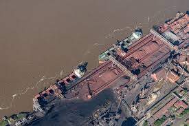 Buques cargueros cargan en San Nicolás de los Arroyos, importante parada en la hidrovía Paraná-Paraguay (imagen: Alamy)