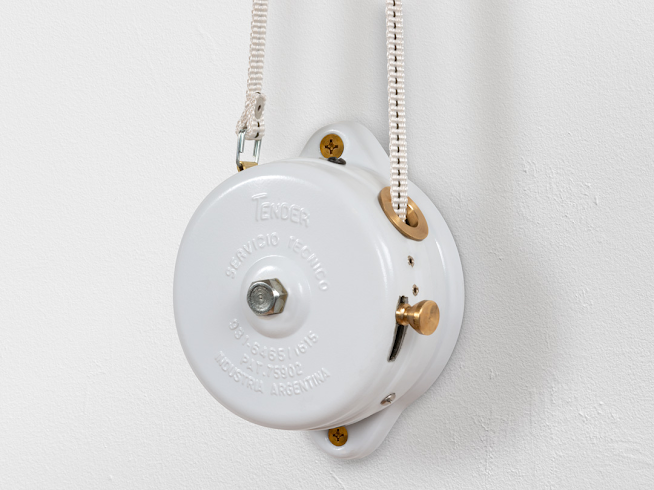 La cuerda que lo hace subir y bajar esta gastada e, incluso, tiene un remiendo producto de alguna antigua reparación.