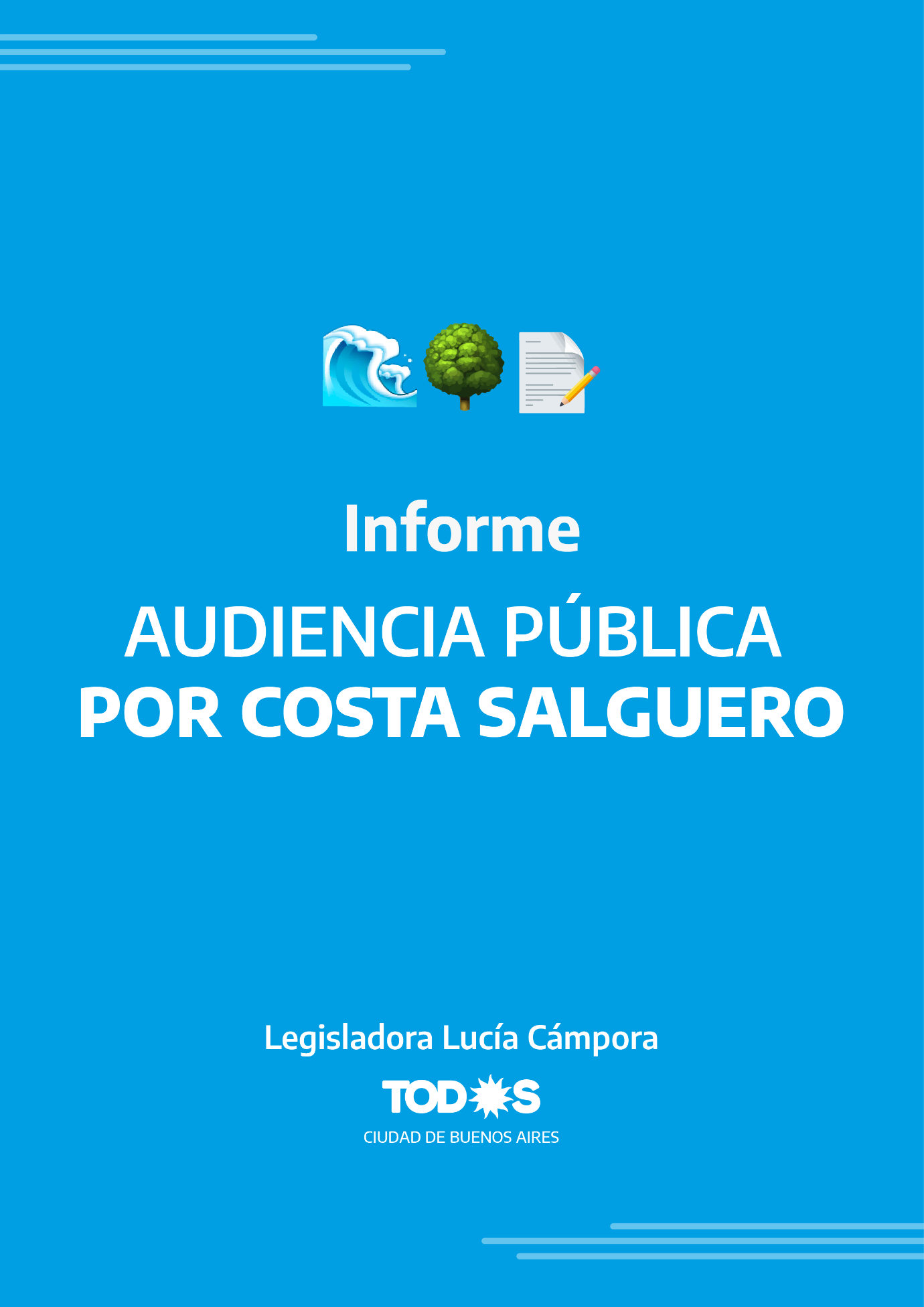 Este informe pretendió dar cuenta de la histórica participación ciudadana que se vivió desde el 27 de noviembre de 2020 al 28 de enero de 2021. El resultado es contundente: la abrumadora mayoría de los participantes se han manifestado en contra del proyecto y a favor de la construcción de un parque público, de acceso irrestricto, a la ribera del Río de la Plata. Nunca en la historia de la Legislatura porteña hubo una participación de estas dimensiones.