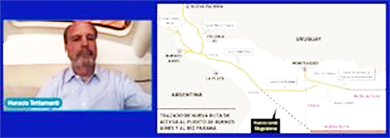 En este sentido da el ejemplo concreto del Río de la Plata, al que no se le da la suficiente relevancia en la Vía Troncal de Navegación: “En la vía troncal de navegación está el Río de la Plata; que no solamente tiene una gran relevancia respecto de la logística extractiva de la proteína vegetal sino que es fundamental para los intereses geopolíticos de los Argentinos en el sur.”