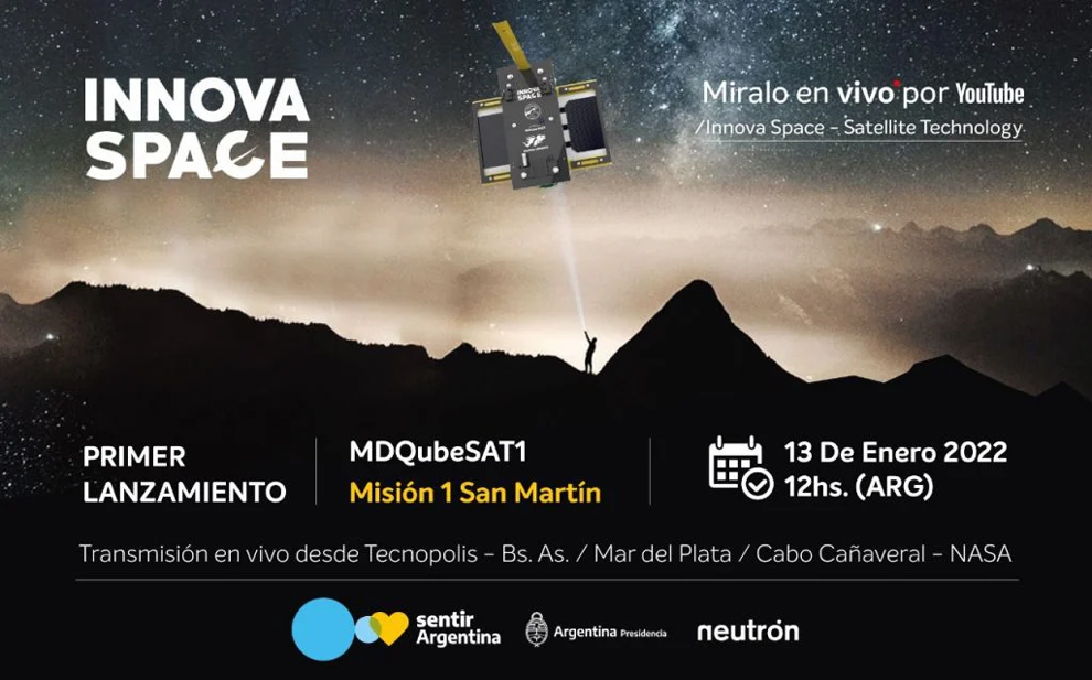 Disfrutá del lanzamiento del satélite del proyecto “San Martín Al Espacio”, que se realizó el 13/01/2022 a las 12 hs de Argentina- desde Cabo Cañaveral que estuvo a cargo de la empresa Space X, con el apoyo de Neutrón, del marplatense Grupo Núcleo, y del Ministerio de Desarrollo Productivo Nacional.