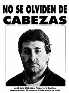 Para que el crimen de nuestro amigo no sea el primero sino el último, no nos olvidemos de él, porque hoy todos somos José Luis Cabezas”.