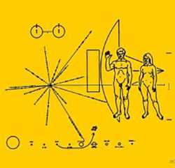 Se trata de la famosa discusión en torno al primer intento más o menos serio que hizo la humanidad para comunicarse con civilizaciones extraterrestres. Todo comenzó allá por el año 1972 con el lanzamiento del Pionner 10, una nave espacial que sería enviada hasta un punto del espacio donde ninguna creación humana había llegado. Dado que hipotéticamente existía la posibilidad de que la nave tuviera contacto con vida inteligente, la discusión que se dio públicamente y que reseña muy bien Carl Sagan en su libro La conexión cósmica, pasaba por cuál sería el mensaje más representativo que quisiéramos darle a una civilización desconocida. Se trataba de encontrar una síntesis y de poder acordar cómo queríamos ser representados frente a otra civilización destacando aquello que tenemos en común pese a ser todos diferentes.