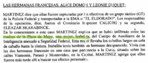“Se había infiltrado entre las Madres de Plaza de Mayo una mujer, Isabelita, del Cuerpo de Auxiliares de Inteligencia, anexado a Seguridad Federal”, dijo Martínez en 1981.