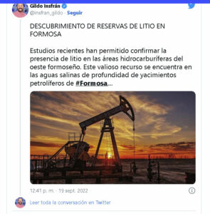 FORMOSA CONFIRMÓ LA «PRESENCIA DE LITIO» EN ÁREAS PETROLERAS