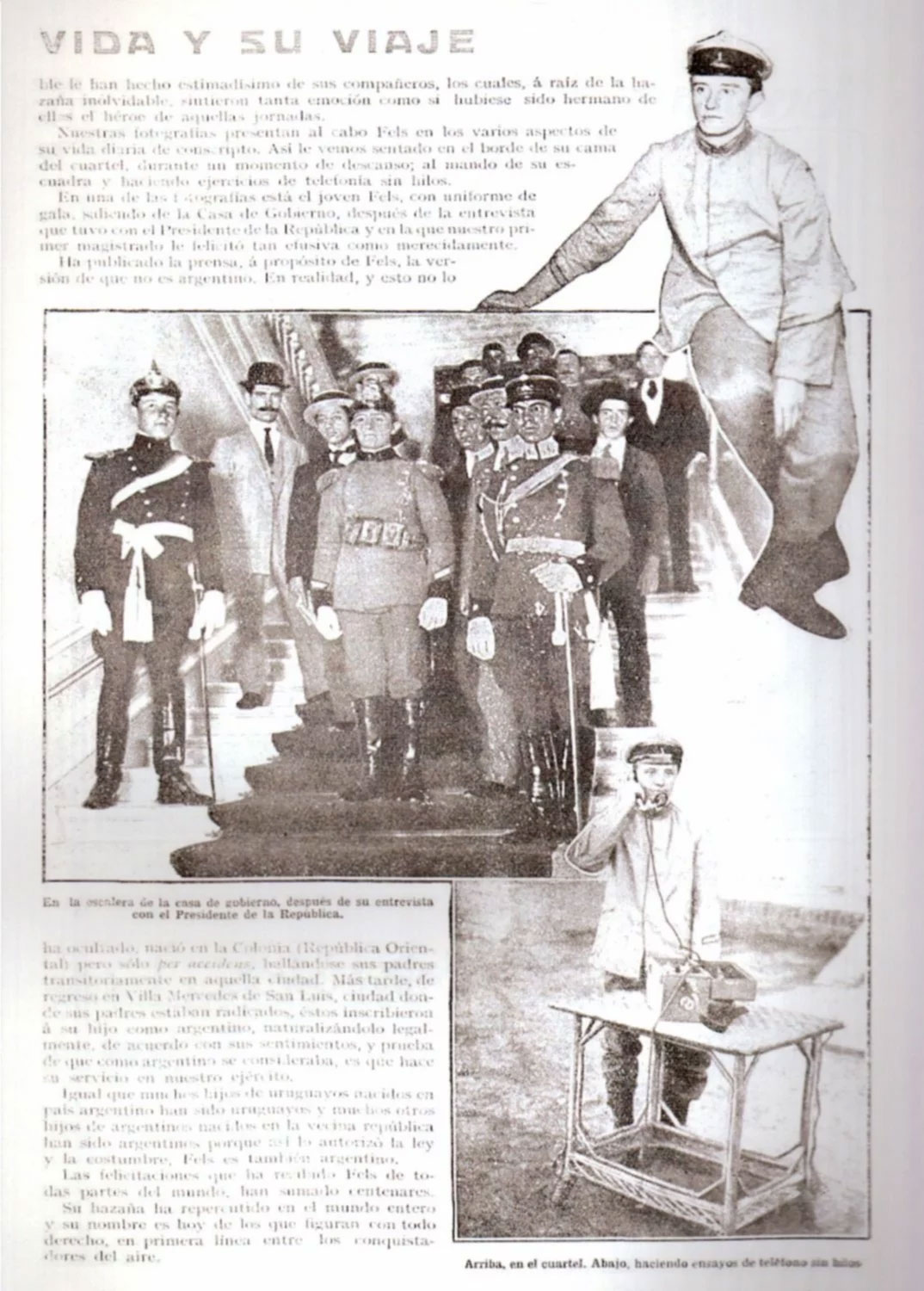 Juan Civalero cuenta una anécdota de aquel hecho que salió publicada el 14 de diciembre de 1912 en la revista Caras y Caretas. «A la salida de la audiencia con el presidente Roque Sáenz Peña, sobre las escalinatas de la Casa Rosada, Fels fue entrevistado por varios periodistas y allí le dijeron que era dudosa su nacionalidad, le preguntaron si era argentino o uruguayo. El flamante cabo contestó: “Nací en Uruguay por accidente, pero yo vengo de Villa Mercedes, provincia de San Luis”.