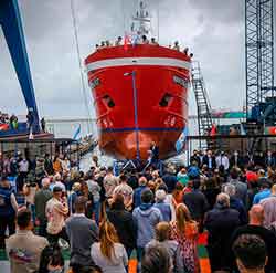 Quizás porque una industria naval pujante habla de un país que avanza, cada vez que en una botadura la botella golpea la proa y se escuchan las sirenas, la emoción invade el lugar.