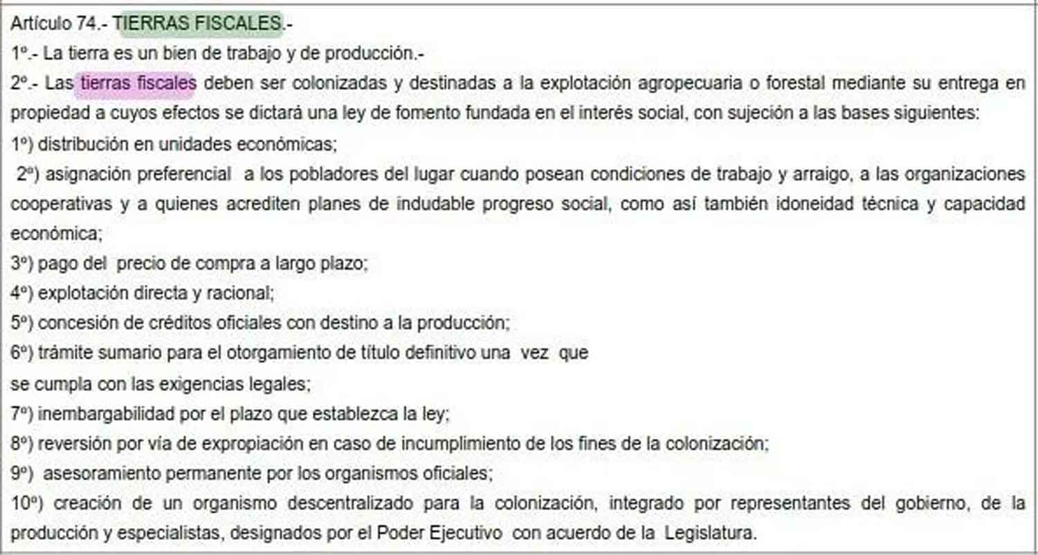 A diferencia de las diez «salvaguardas» que preveía la Constitución del ’86 para el uso de las tierras fiscales, en el nuevo texto hay solo dos incisos y muy poco precisos.