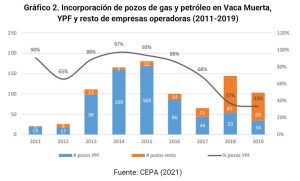 Tal es así que, en los primeros años de la actividad en la zona, casi la totalidad fue desarrollada por YPF.