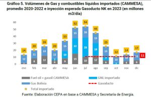 - Sustituir importaciones de combustible alternativo (Fuel Oil y Gasoil) importado en los picos para la generación termoeléctrica (en 2022 se importó 10 Mm3/día).